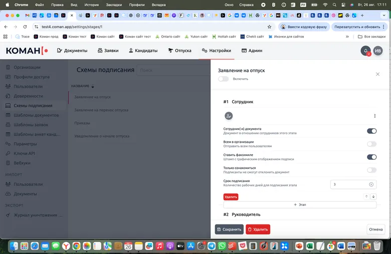 🔹Контроль сроков. Для каждого этапа маршрута можно задать срок подписания. Сотрудники получают уведомления о необходимости подписать документ до определенного срока. Это помогает избежать задержек и держать процесс под контролем.